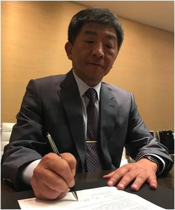 臺當(dāng)局提供的陳時中簽署賀信圖片。
