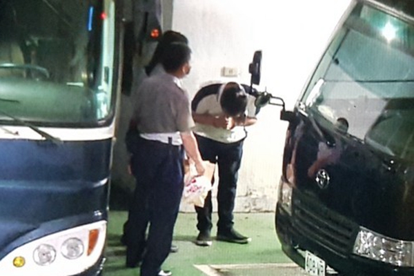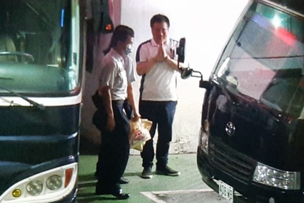 蔡正元被戴上手銬,與其他案件被告一同坐上囚車前往看守所,上車前,他雙手合十,3次面向媒體鏡頭鞠躬。(圖片來(lái)源:臺(tái)灣“東森新聞云”)