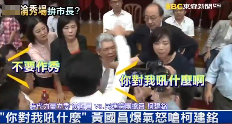 黃國(guó)昌在議場(chǎng)與民進(jìn)黨“立法院”黨團(tuán)總召柯建銘對(duì)嗆。(視頻截圖)
