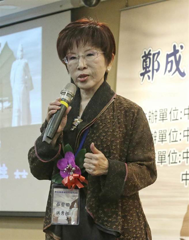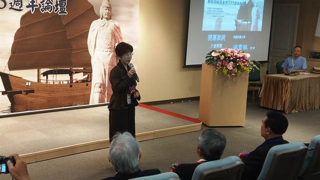 國(guó)民黨前主席洪秀柱出席“鄭成功收復(fù)臺(tái)灣355周年論壇”。(圖片來(lái)源:臺(tái)灣“中時(shí)電子報(bào)”)