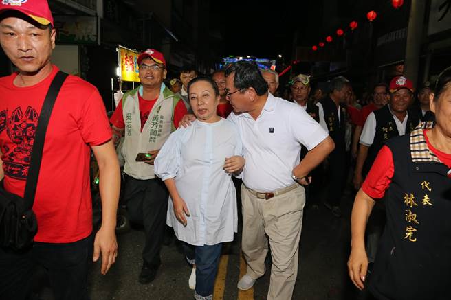 “綠委”陳明文強(qiáng)摟著嘉義縣長(zhǎng)張花冠說(shuō)話(huà),現(xiàn)張花冠說(shuō)不舒服,考慮提告。(圖片來(lái)源:臺(tái)灣《中時(shí)電子報(bào)》)