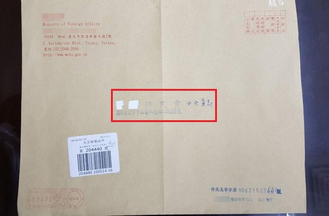 臺當局所謂“外交部”寄來的公文信函,信封上收件人一欄,原本是印著“中國國民黨”等字,結果卻十分突兀地,被人以修正帶把“中國”兩字涂抹掉,讓國民黨十分不滿。(圖片取自臺媒)
