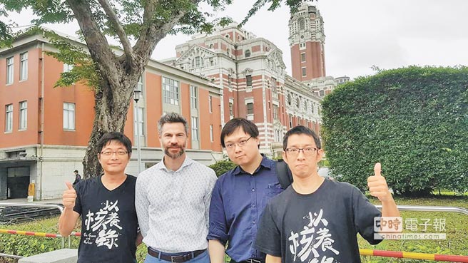 “氣候先鋒者聯(lián)盟”成員,左起黃其君、沙倫博格、黃士修、楊家法。(圖片來(lái)源:臺(tái)灣《中國(guó)時(shí)報(bào)》)