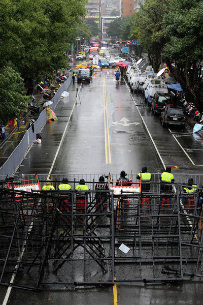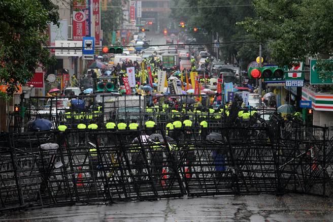 臺(tái)灣“立法院”8日召開臨時(shí)會(huì)處理“勞基法”修正案,警方管制“立院”周邊道路,防止抗議勞團(tuán)靠近。(圖片來源:臺(tái)灣“中國時(shí)報(bào)”)