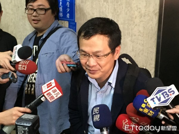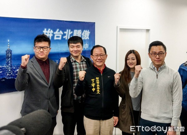 丁守中與他的發(fā)言人群。(圖片來源:臺灣“東森新聞云”)