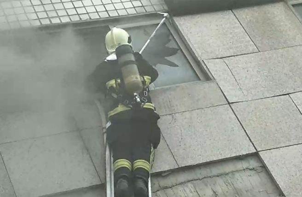 云門翠堤疑起火,救難人員破窗。(圖片來源:臺灣“中時(shí)電子報(bào)”)