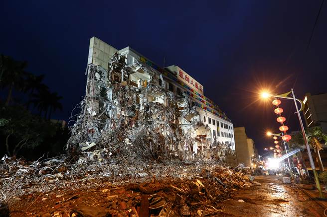 地震中坍塌的花蓮統(tǒng)帥大飯店。(圖)