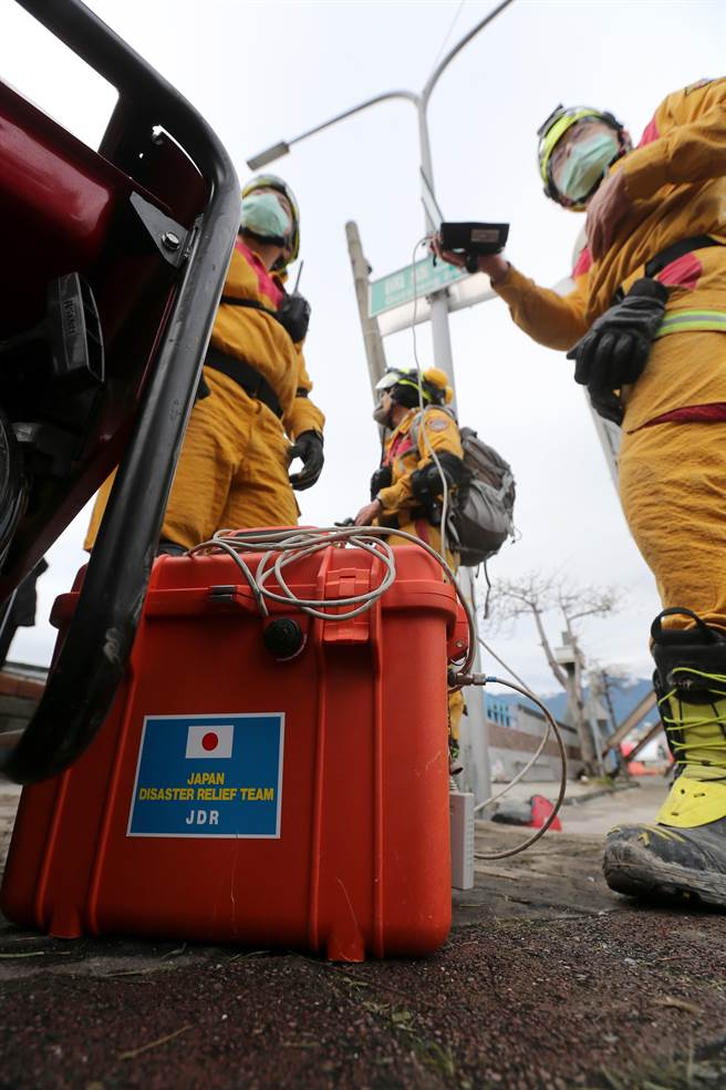 花蓮地震后,臺(tái)灣搜救隊(duì)員使用日方帶來(lái)的深層生命探測(cè)儀器。(圖片來(lái)源:臺(tái)灣《中時(shí)電子報(bào)》)