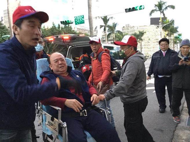 反年改團(tuán)體清晨突襲臺(tái)“立法院”,八百壯士副指揮官吳斯懷沖撞中受傷送醫(yī)。(翻攝網(wǎng)友臉書)