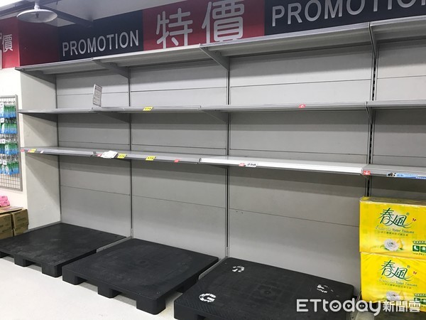 臺灣地區(qū)賣場衛(wèi)生紙被搶購一空 。(圖片來源:臺灣“東森新聞云”)