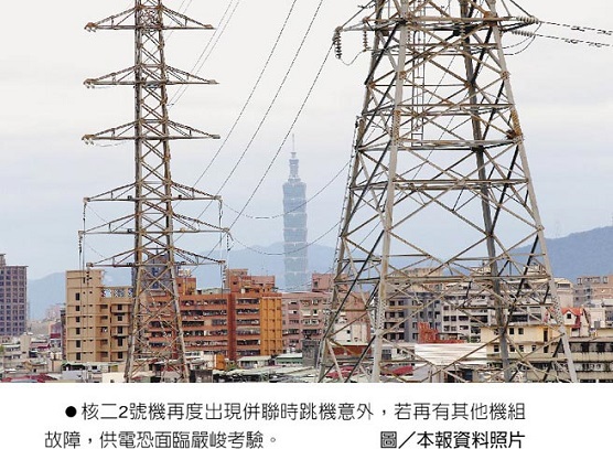 報道說,停機(jī)長達(dá)673天,前天重新并聯(lián)發(fā)電的核二2號機(jī),昨下午在進(jìn)行第二次并聯(lián)測試時,反應(yīng)爐突啟動自我保護(hù)機(jī)制跳機(jī),發(fā)電作業(yè)暫停。臺電檢查后,發(fā)現(xiàn)是蒸汽旁通閥壓力控制系統(tǒng)“過于靈敏”造成,已請原廠今晚飛抵臺灣重新調(diào)校,預(yù)計本周末以前提檢討報告向“原能會”申請重啟。據(jù)《聯(lián)合新聞網(wǎng)》報導(dǎo),“原能會核管處”則表示,有些問題檢查不出來,核電廠機(jī)組啟動后,才會知道。