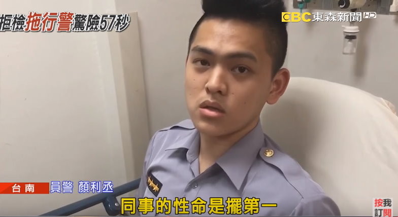 22歲警察顏利丞說(shuō),同事性命擺第一“這是身為一個(gè)警察,你應(yīng)該要做的事情!保▓D片來(lái)源:臺(tái)灣東森新聞云)