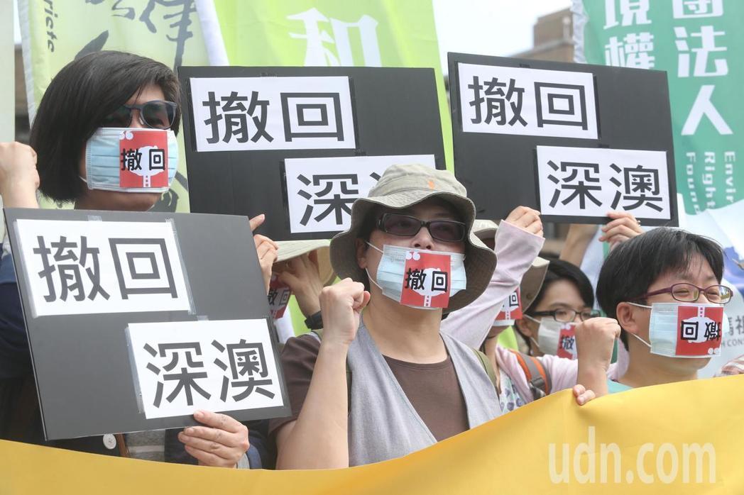 撤回深澳聯(lián)署已破五萬人,環(huán)團日前到“行政院”前陳情,要求撤回深澳案。(圖片來源:臺灣《聯(lián)合報》)