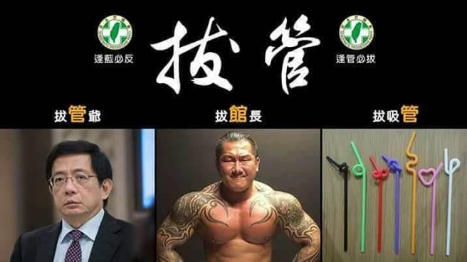 成吉思汗健身俱樂部“館長(zhǎng)”陳之漢昨在臉書分享一張圖,該圖將“拔管爺”、“拔館長(zhǎng)”、“拔吸管”并列,讓館長(zhǎng)忍不住說(shuō)“誰(shuí)做的阿?媽的笑死”。