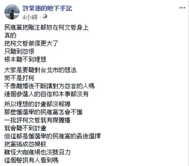 許常德臉書全文。(圖片來(lái)自臺(tái)媒)