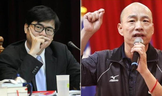 高雄市民進黨參選人陳其邁(左)與國民黨參選人韓國瑜(右)。(圖片來源:臺灣《中時電子報》)