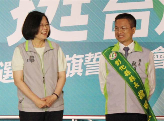 蔡英文與彰化縣長(zhǎng)魏明谷。(圖片來源:臺(tái)灣“中時(shí)電子報(bào)”)