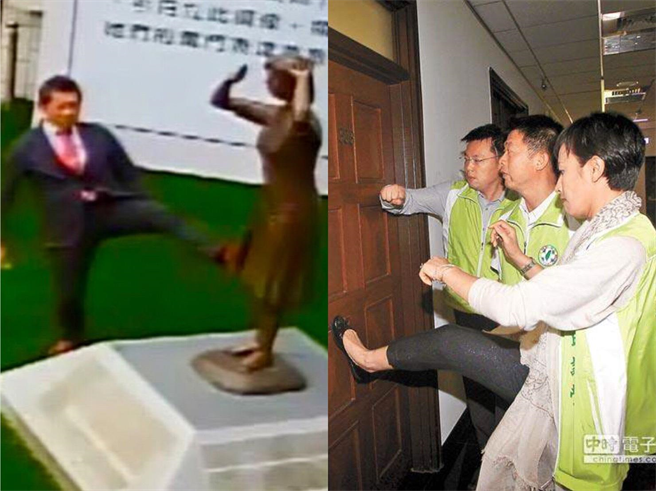 中國臺灣網(wǎng)9月10日訊 據(jù)臺灣“中時電子報”報道,臺南市慰安婦人權(quán)平等促進會上月在國民黨臺南市黨部旁豎立慰安慰銅像,日本抗議團體代表藤井實彥6日至臺南時遭監(jiān)視器拍下用腳狠踢慰安婦銅像畫面。島內(nèi)名嘴謝寒冰在Facebook將藤井實彥與“綠委”邱議瑩的照片對比,同樣都是出腳狠踹,邱議瑩的“屏東無影腳”曾直接踹破臺當(dāng)局前“法務(wù)部長”曾勇夫的辦公室大門,似乎狠勁又略勝一籌。