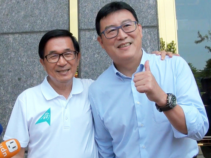 陳水扁(左)同意擔任民進黨臺北市長參選人姚文智(右)競選最高顧問。(圖片來源:臺灣《聯(lián)合報》)