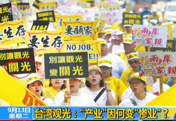 臺(tái)灣觀光業(yè)者抗議當(dāng)局的兩岸政策導(dǎo)致陸客赴臺(tái)游銳減。(央視畫面)