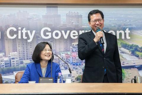 蔡英文與桃園市長(zhǎng)鄭文燦。(臺(tái)媒資料圖)