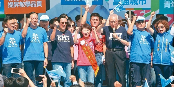 中國(guó)臺(tái)灣網(wǎng)10月15日訊 據(jù)臺(tái)灣《聯(lián)合報(bào)》報(bào)道,年底選戰(zhàn)投票日將近,藍(lán)綠拼場(chǎng)日勁,由前臺(tái)灣地區(qū)領(lǐng)導(dǎo)人馬英九、新北市長(zhǎng)朱立倫和前臺(tái)中市長(zhǎng)胡志強(qiáng)構(gòu)成的“馬立強(qiáng)”組合,昨在國(guó)民黨臺(tái)中市長(zhǎng)參選人盧秀燕競(jìng)選總部成立時(shí)“重現(xiàn)江湖”;綠營(yíng)則由“立法院副院長(zhǎng)”蔡其昌領(lǐng)軍走遍“固本”。
