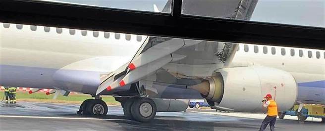機(jī)場群組說,機(jī)上有旅客98名,爆胎原因待查,機(jī)場預(yù)計(jì)關(guān)閉至下午2時(shí)。