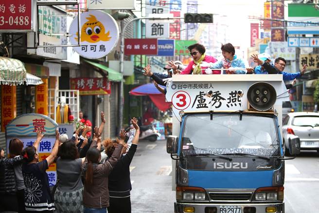 新科臺(tái)中市長(zhǎng)盧秀燕車隊(duì)謝票,民眾熱情揮手致意。(圖片來(lái)源:臺(tái)灣“中時(shí)電子報(bào)”)