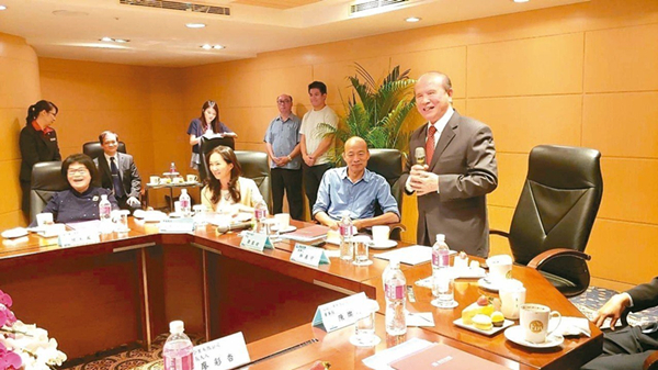 準(zhǔn)高雄市長(zhǎng)韓國(guó)瑜(右二)昨天拜會(huì)臺(tái)灣義聯(lián)集團(tuán)董事長(zhǎng)林義守(右一)。 (圖片來源:臺(tái)灣《聯(lián)合報(bào)》)