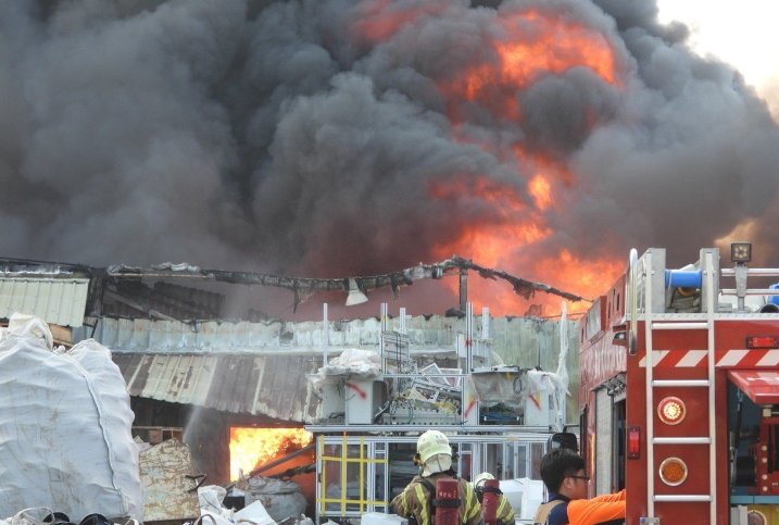 臺南善化回收場大火,1人受困。(圖片來源:臺灣《聯(lián)合報》)