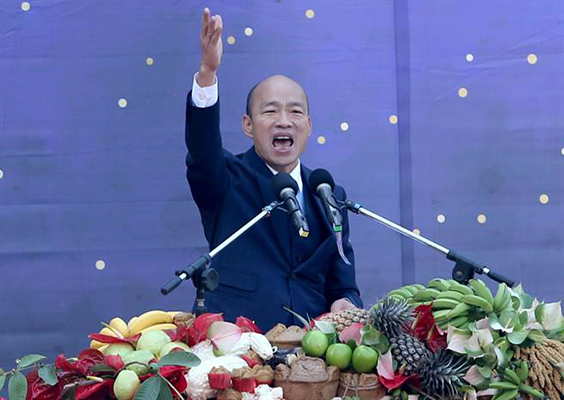 韓國(guó)瑜在就職典禮上講話。(圖片來源:臺(tái)灣“中時(shí)電子報(bào)”)