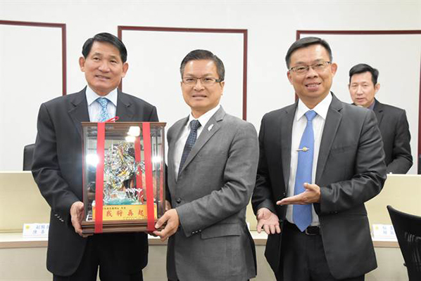彰化縣長魏明谷(中) 卸任時被贈的“我將再起”琉璃。(圖片來源:臺灣“中時電子報”)