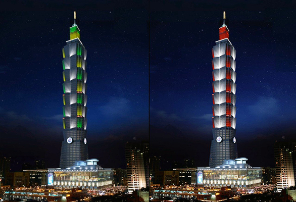 臺(tái)北101大樓將上演一場(chǎng)為時(shí)兩分半鐘的燈光音樂大秀。(圖片取自臺(tái)媒)