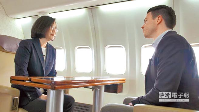 蔡英文19日在專機(jī)上,全程以英語(yǔ)接受美國(guó)有線電視網(wǎng)(CNN)獨(dú)家專訪。(圖片取自臺(tái)媒)