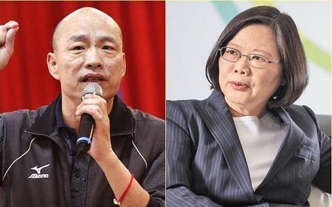 高雄市長韓國瑜(左圖)與臺灣地區(qū)領導人蔡英文(右圖)。(圖片來自臺媒)