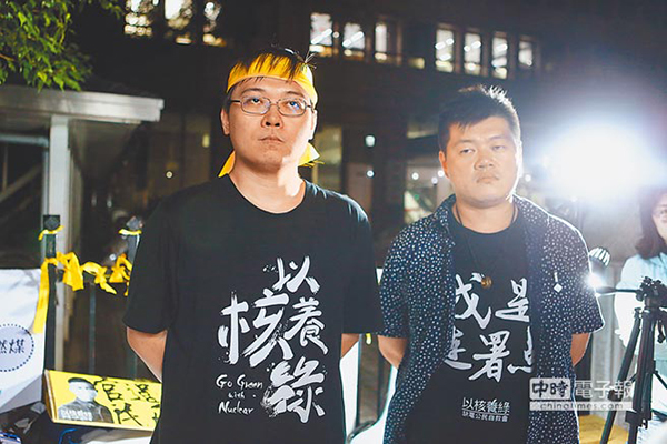 “以核養(yǎng)綠公投”提案領(lǐng)銜人黃士修(左)痛批林義雄“把民主進步黨做賤了”。(圖片來源:臺灣“中時電子報”)