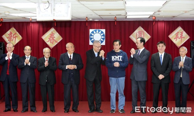 國(guó)民黨上次“太陽(yáng)”同臺(tái)是在黨中央新春團(tuán)拜。(圖片來(lái)源:臺(tái)灣“東森新聞云”)