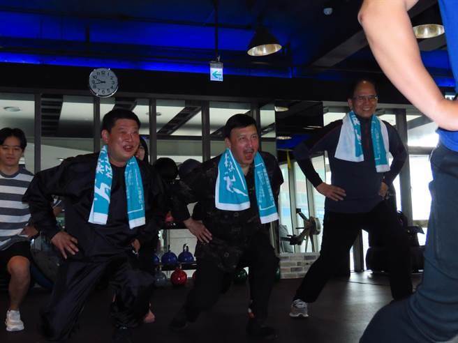 民進(jìn)黨候選人余天(中)5日邀請(qǐng)游鍚堃(右)、新北市議員陳啟能(左),一起到健身房“操一下”。(圖片來(lái)源:臺(tái)灣“中時(shí)電子報(bào)”)