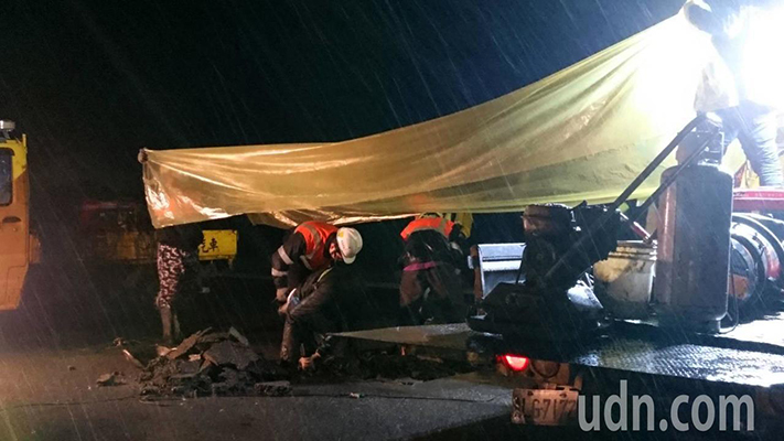 桃園機(jī)場(chǎng)8日才停電9日又逢連日雨,機(jī)場(chǎng)南跑道中段鋪面疑因連日大雨影響,出現(xiàn)長(zhǎng)約45厘米、寬30厘米,深度約3厘米的凹洞。(圖片取自臺(tái)媒)