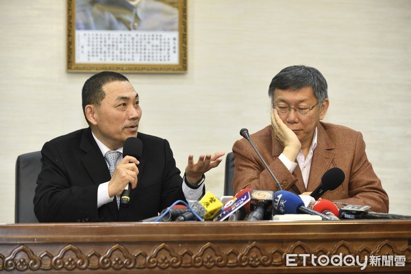雙北市長(zhǎng)柯文哲侯友宜會(huì)面,會(huì)后接受媒體聯(lián)訪。(圖片來(lái)源:臺(tái)灣“東森新聞云”)