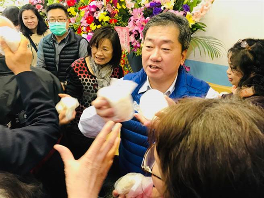 國民黨基隆市黨部主委黃希賢的“立委”初選服務(wù)處今(12)日正式成立,黃希賢在現(xiàn)場發(fā)放包子,響應(yīng)高雄市長韓國瑜的熱潮。(圖片來源:臺(tái)灣“中時(shí)電子報(bào)”)
