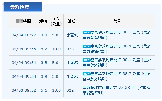 臺(tái)東今4次地震都為余震 不排除再出現(xiàn)5級(jí)余震