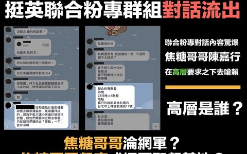 粉絲專頁“清出于南”貼出一張挺英聯(lián)合粉專的Line群組對話,網(wǎng)友紛紛詢問“對話中的高層是誰?”(圖片來自臺媒)