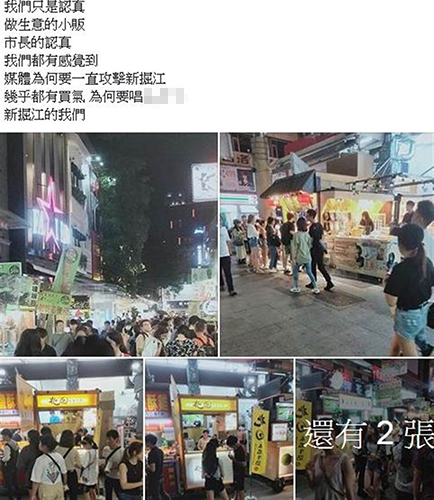 一位新崛江攤商在臉譜網(wǎng)不滿表示“我們只是認(rèn)真做生意的小販,市長的認(rèn)真我們都有感覺到,媒體為何要一直攻擊新崛江,幾乎都有買氣,為何要唱衰新崛江的我們!”(圖片取自臺媒)