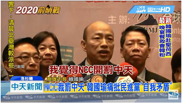"NCC"再罰中天100萬 韓國瑜批綠營拿到權(quán)力自我打臉