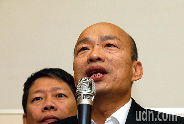 高雄市長韓國瑜訪美結束在桃園機場接受訪問時表示,郭臺銘是藍軍不可多得的人才,對他參選2020表示很開心。(圖片來源:臺灣《聯(lián)合報》)