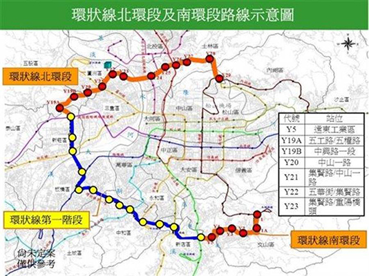 臺北捷運環(huán)狀線第二階段:北環(huán)段及南環(huán)段。(圖片取自臺媒)