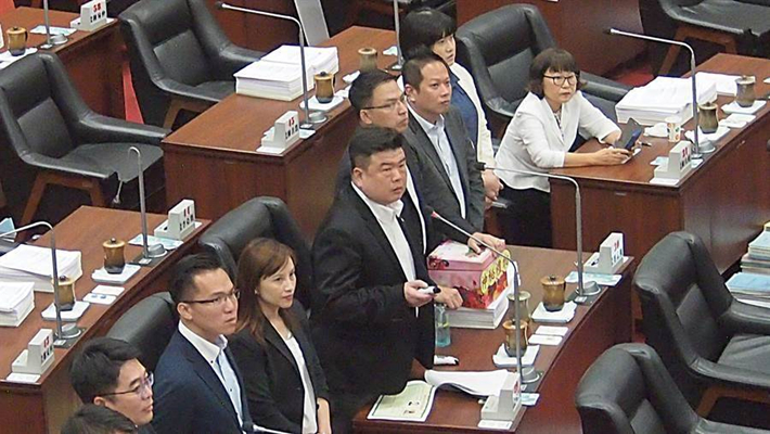 民進(jìn)黨高市議員簡煥宗6日質(zhì)詢時淚灑議場,指控韓粉揚(yáng)言對其孩子不利(圖片來源:臺灣“中時電子報(bào)”)