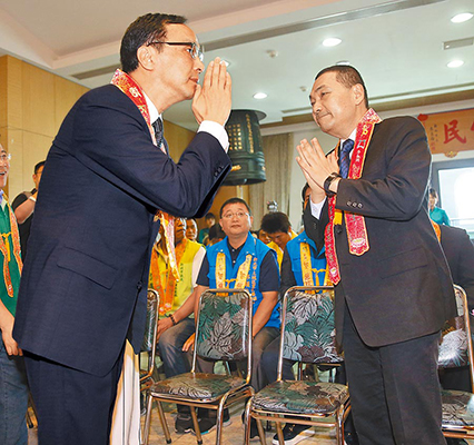 朱立倫(左)與侯友宜(右)至土城慈法禪寺參加浴佛節(jié),兩人先后到場(chǎng)短暫寒暄。針對(duì)賴清德批韓國(guó)瑜提出的自貿(mào)區(qū)說帖,朱立倫反諷,“賴‘院長(zhǎng)’記憶不太好”,賴清德?lián)闻_(tái)南市長(zhǎng)就已經(jīng)在談自經(jīng)區(qū)。(圖片來源:臺(tái)灣“中時(shí)電子報(bào)”)