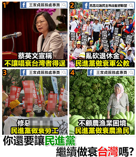 對此,臉譜網(wǎng)粉絲專頁“鳳凰花護民主市政監(jiān)督聯(lián)盟”發(fā)文指出,蔡英文宣稱不讓唱衰臺灣者得逞,但亂砍退休金民進黨做衰軍公教,修惡“勞基法”民進黨做衰勞工,不顧農(nóng)漁業(yè)困境民進黨做衰農(nóng)漁民。該粉專怒吼“你還要讓民進黨繼續(xù)做衰臺灣嗎?”
